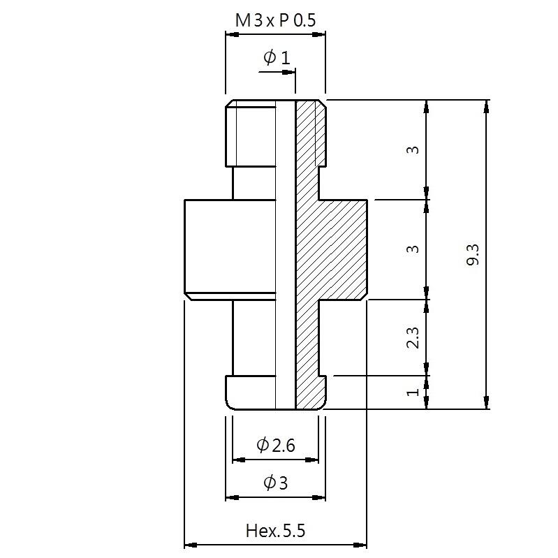 Fitting Male thread-B type Thread M3 - D 3 - H 9.3 (A3B-128)