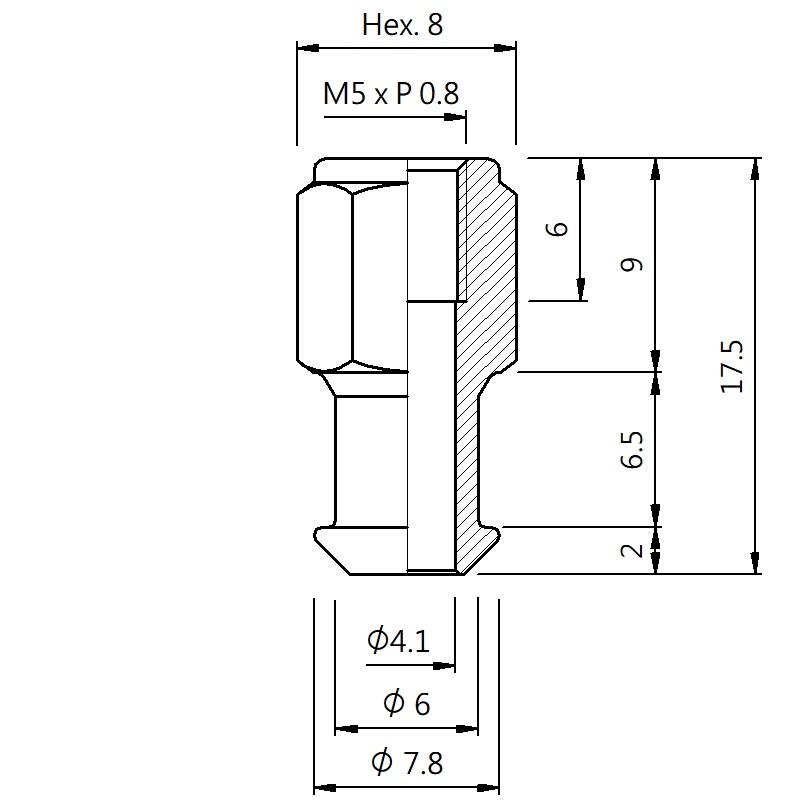 Fitting Female thread-Y type Thread M5 - D 7.8 - H 17.5 (B5Y-079)