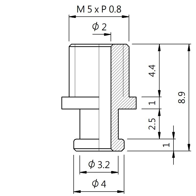 Fitting Male thread-T type Thread M5 - D 4 - H 8.9 (A5T-064)