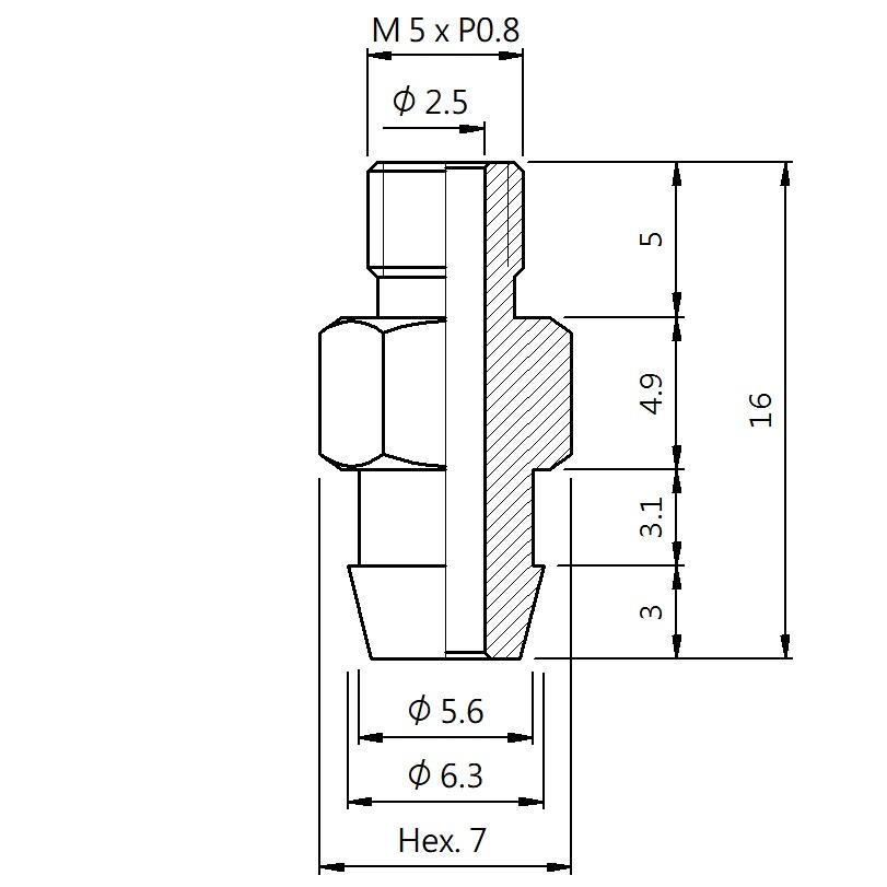 Fitting Male thread-Y type Thread M5 - D 5.6 - H 16 (A5Y-030)