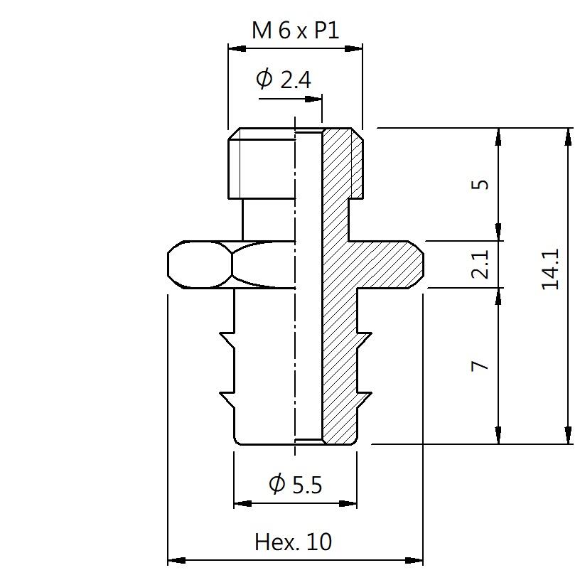 Fitting Male thread-Y type Thread M6 - D 5.5 - H 14.1 (A6Y-049)